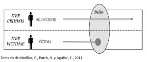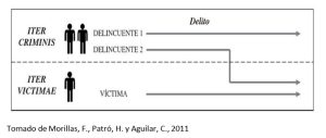 El análisis del fenómeno criminal requiere no sólo el estudio de la conducta de los agresores, sino de todos los protagonistas que concurren en el delito. El Derecho Penal ha creado el término iter criminis para hacer referencia a las fases por las que pasa un agresor hasta cometer un delito, comenzando por la concepción de la idea de delinquir hasta la realización del hecho criminal. Por su parte, la Victimología ha dado lugar al término iter victimae para definir el camino por el que cursan los individuos hasta que son victimizados, incluyendo el estudio de las condiciones que les hacen proclives a convertirse en víctimas, antes, durante y después de consumado el delito.