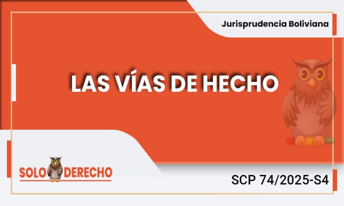 La SCP 0998/2012 de 5 de septiembre, al respecto establece: “En principio y en el marco de los postulados del Estado Constitucional de Derecho, debe definirse a las llamadas ‘vías de hecho’, a cuyo efecto, es imperante señalar que la tutela de derechos fundamentales a través de la acción de amparo constitucional frente a estas vías de hecho, tiene dos finalidades esenciales: a) Evitar abusos contrarios al orden constitucional vigente; y, b) Evitar el ejercicio de la justicia por mano propia; ; en ese orden, a partir de estas dos finalidades y dentro del alcance de los presupuestos de activación de la acción de amparo constitucional como mecanismo idóneo para la eficacia tanto vertical como horizontal de derechos fundamentales, las vías de hecho se definen como el acto o los actos cometidos por particulares o funcionarios públicos, contrarios a los postulados del Estado Constitucional de Derecho por su realización al margen y en prescindencia absoluta de los mecanismos institucionales vigentes para una administración de justicia, afectando así derechos fundamentales reconocidos por el bloque de constitucionalidad, por lo que al ser actos ilegales graves que atentan contra los pilares propios del Estado Constitucional de Derecho, de acuerdo al mandato inserto en el art. 25 de la Convención Americana de Derechos Humanos, la acción de amparo constitucional, es un medio idóneo para la tutela eficaz, pronta y oportuna de los derechos fundamentales lesionados como consecuencias de vías de hecho.
